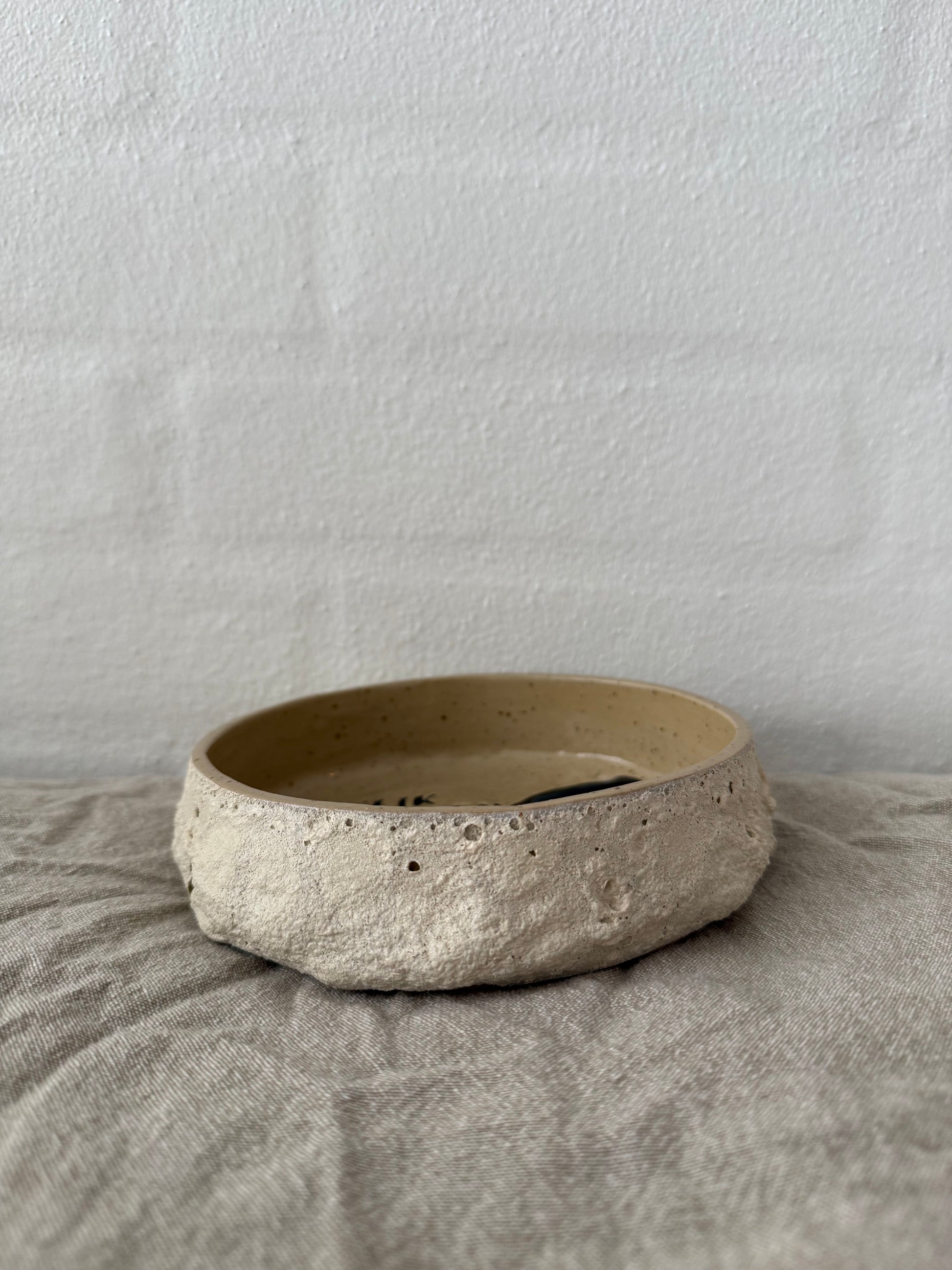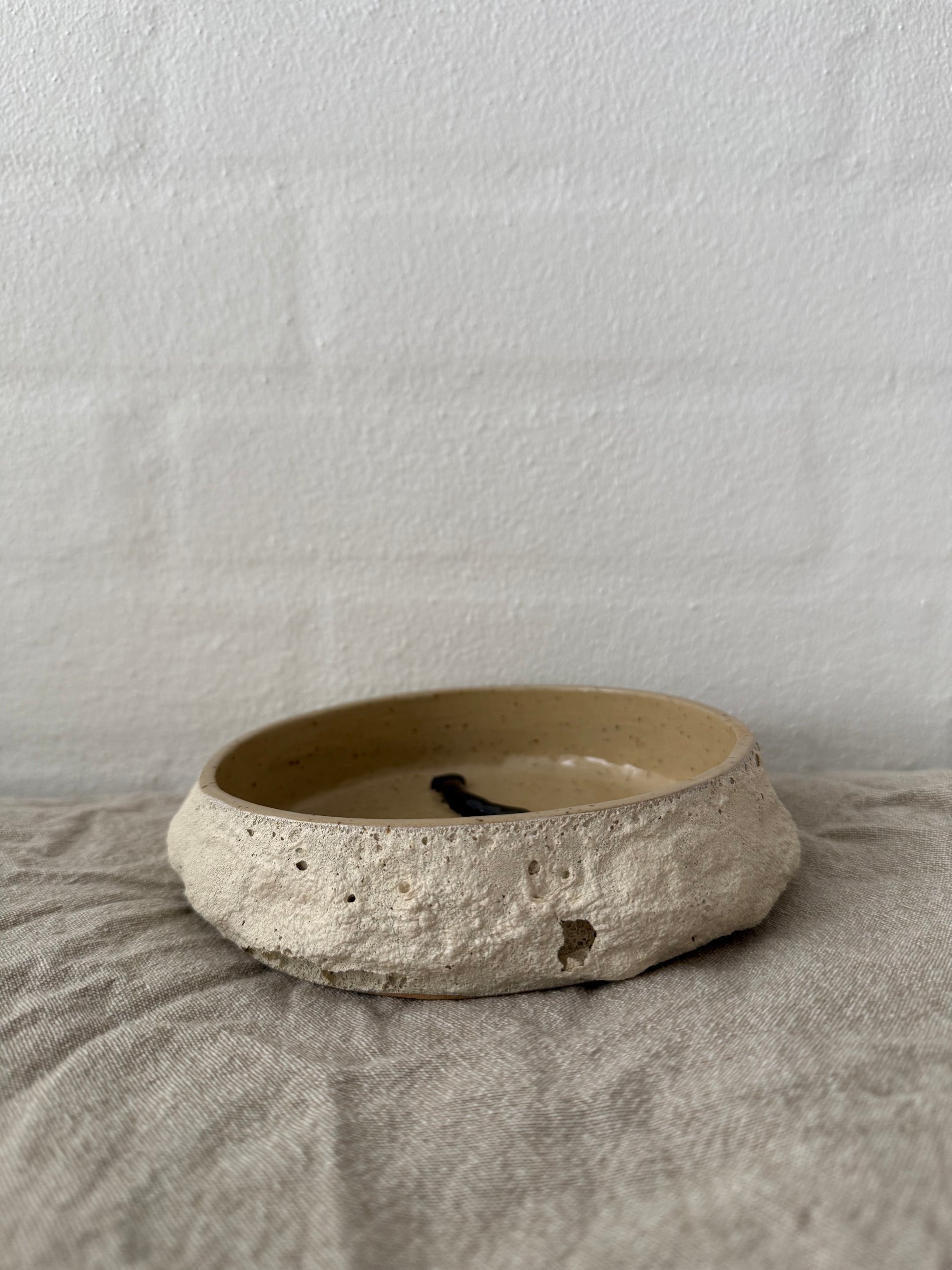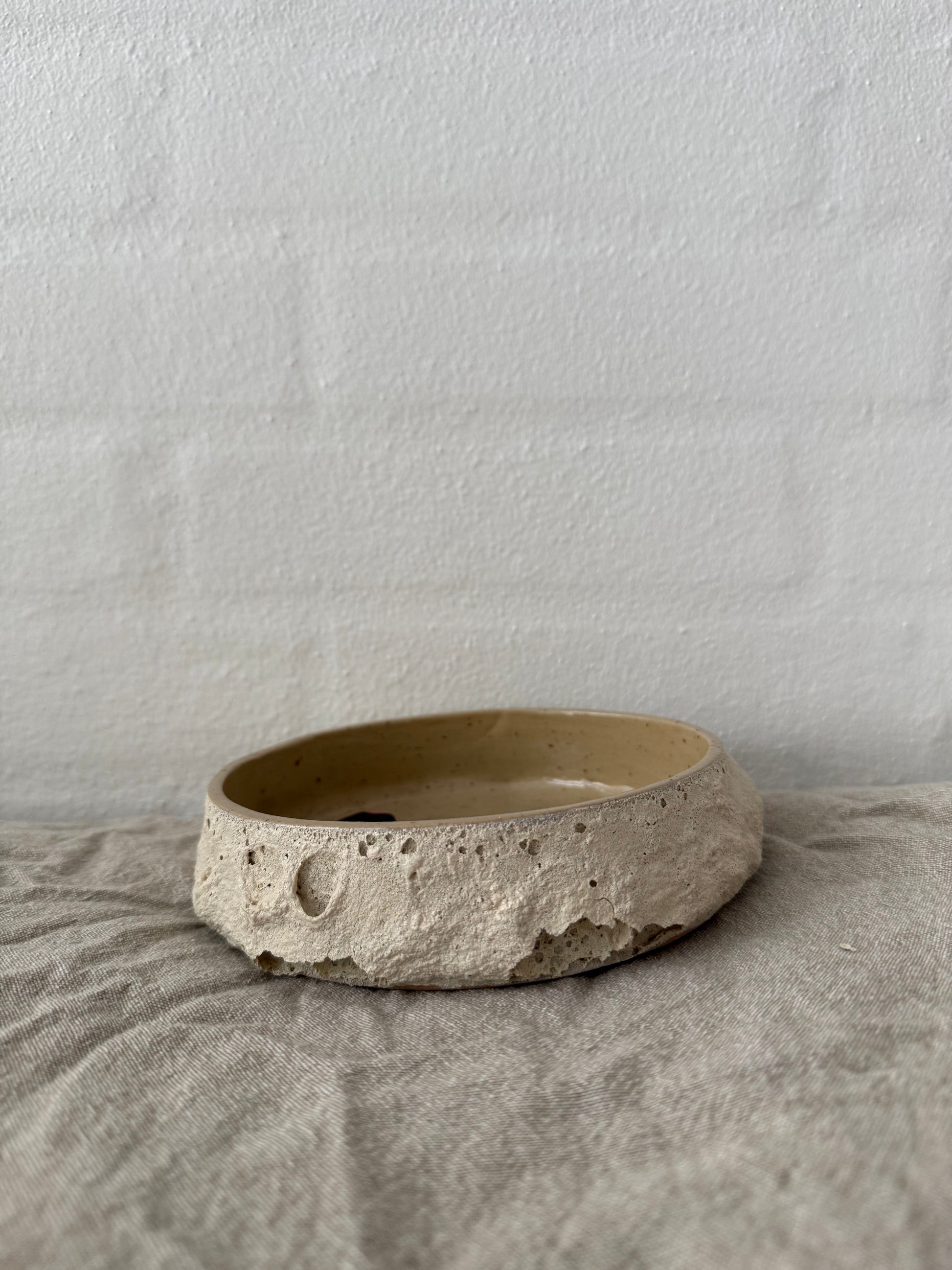 Med sin rå, kraterlignende overflade på ydersiden og sit enkle udtryk indeni, er den både dekorativ og praktisk.