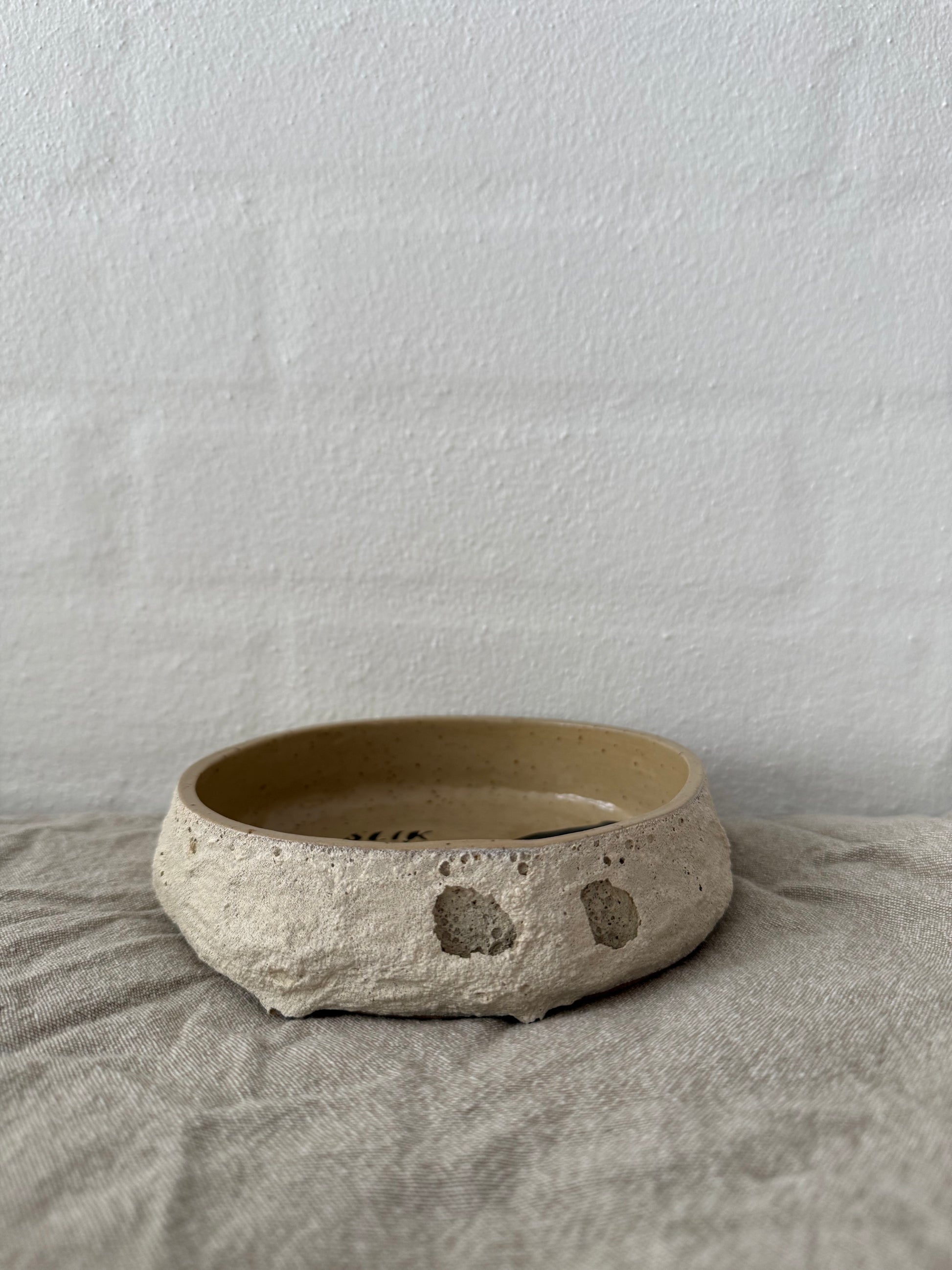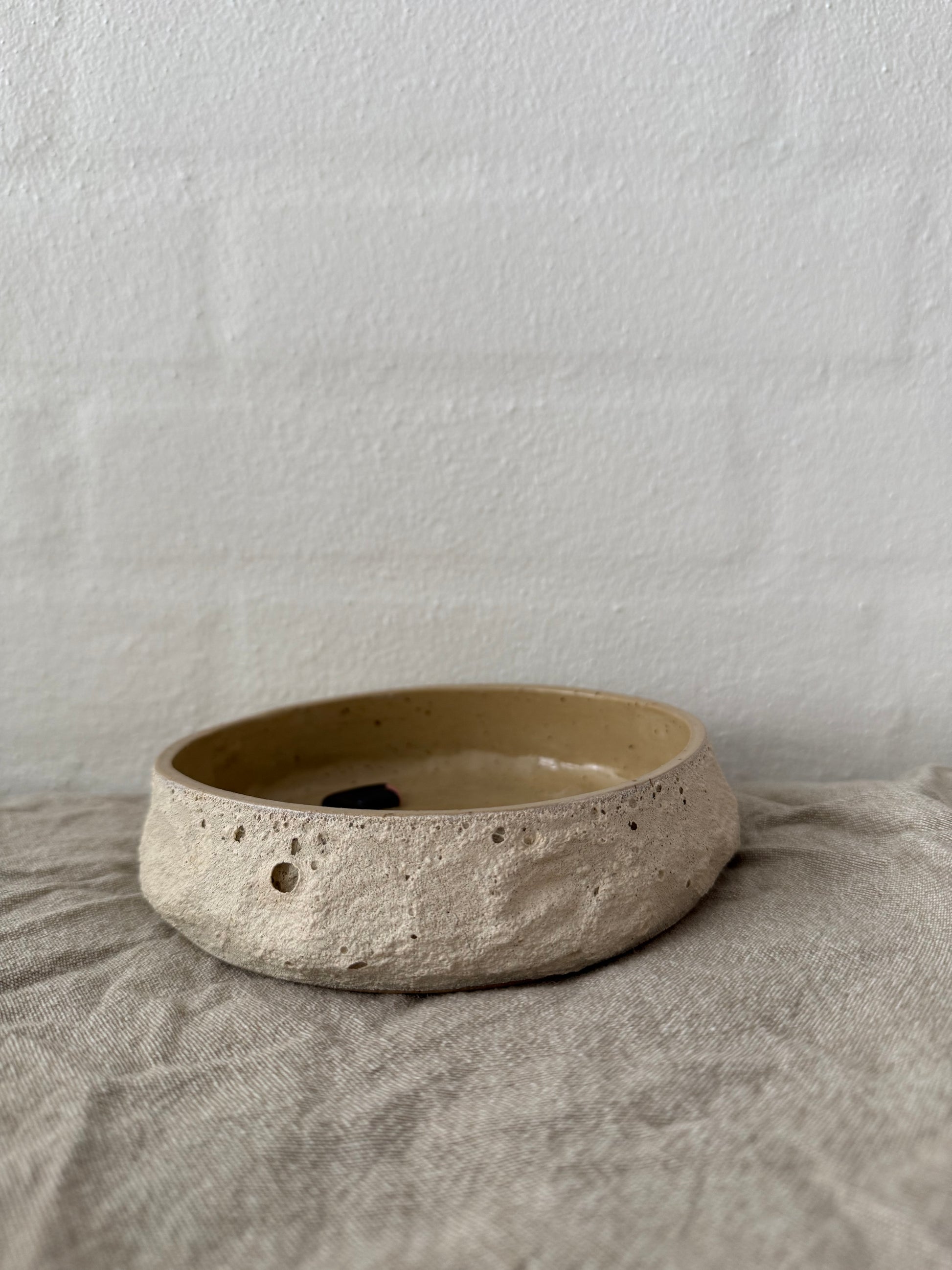 Med sin rå, kraterlignende overflade på ydersiden og sit enkle udtryk indeni, er den både dekorativ og praktisk.