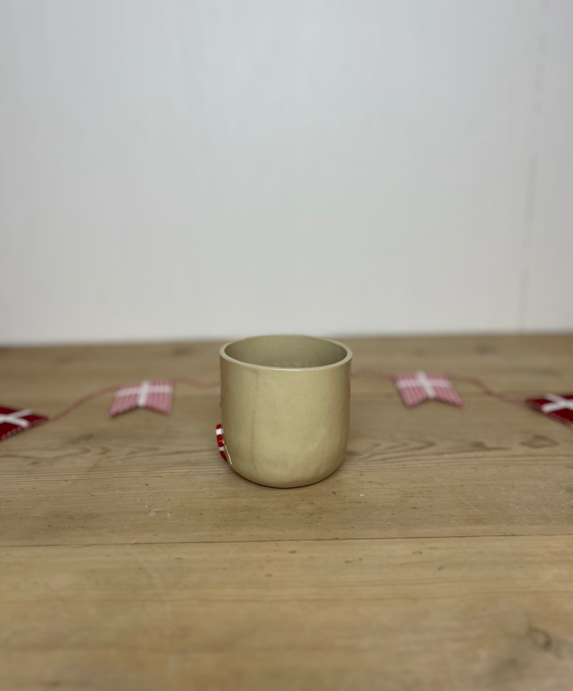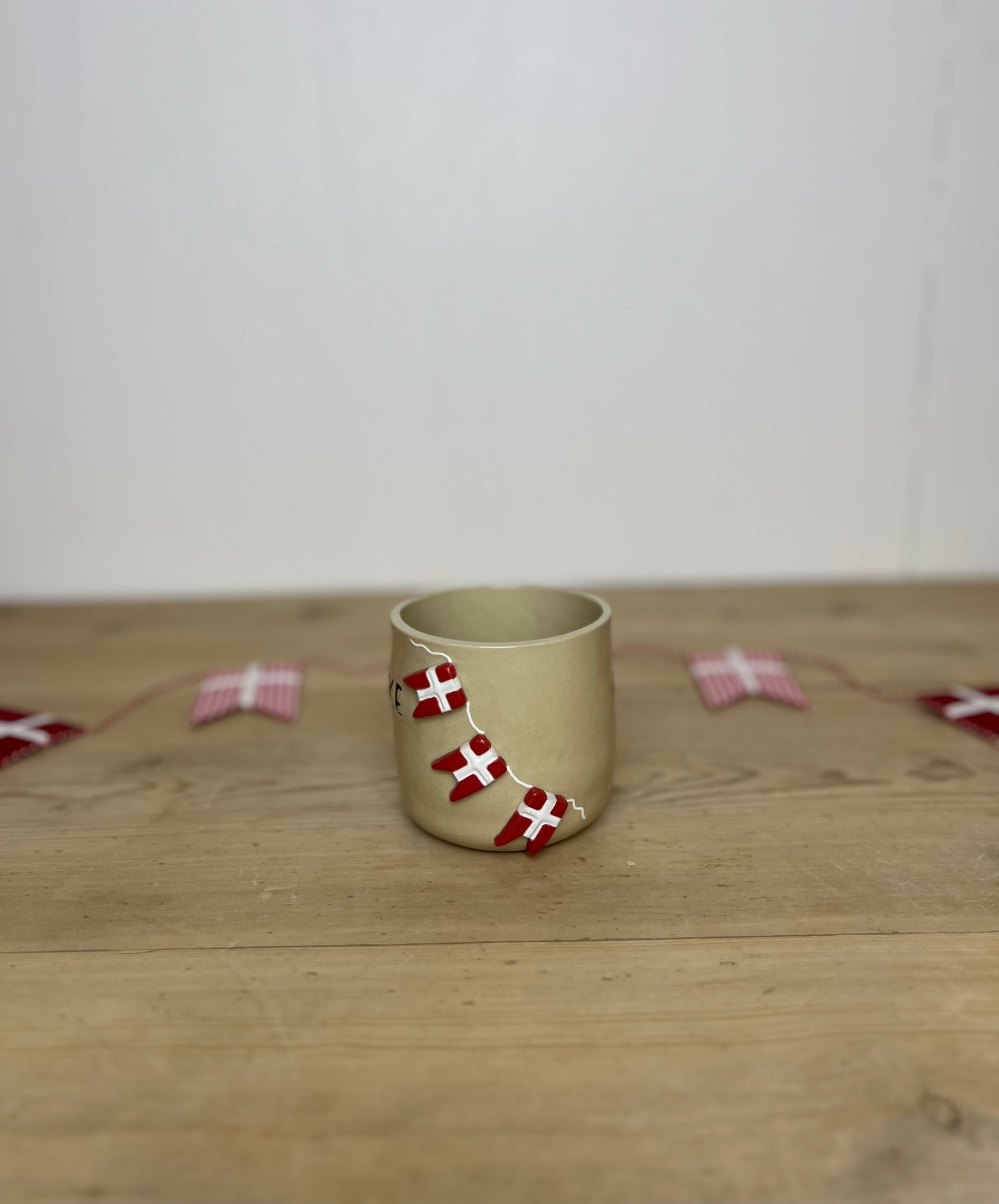 En håndlavet kop fyldt med ægte fødselsdagsstemning 🎂🎈 Med “TILLYKKE” og små dannebrogsflag er den klar til at fejre dagen på helt klassisk dansk manér.